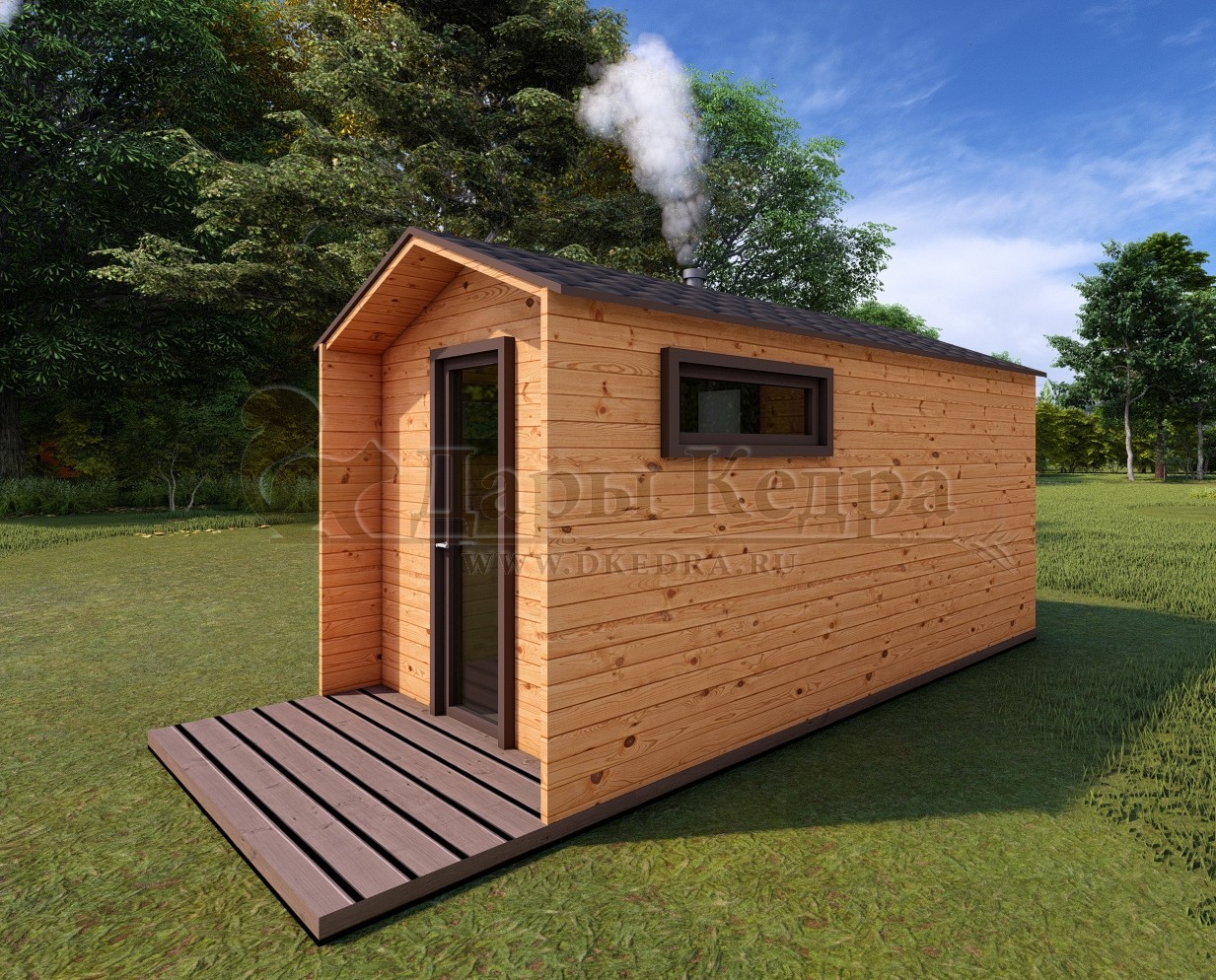 Каркасно-щитовая баня из кедра «Мини» с верандой Это классическая прямоугольная модель бани с двумя отделениями: парилкой и раздевалкой. Для удобства пользования раздевалка оснащена лавочкой и вешалкой. Парилка оборудована двухуровневым открытым полком и печью. За счет небольшой конструкции баня нагревается в течении 30 минут. На просторной веранде можно оставить вещи или отдохнуть после парения. Каркасно-щитовую баню можно заказать как в готовом, так и в разборном варианте. В разборной модели готовые щиты из кедра быстро собираются в полноценное строение, что также позволяет исключить лишний строительный мусор. Такая баня не требует полноценный фундамент, поэтому при необходимости ее можно перенести в другое место. Обращаем Ваше внимание, что в стандартную комплектацию бани входит полок открытого типа в парной. Дополнительно можно заказать полок закрытого типа или лавку! Древесина кедра насыщена эфирными маслами и фитонцидами, которые активируются при воздействии температур. Таким образом, парение в каркаско-щитовых банях из кедра становится еще полезнее.