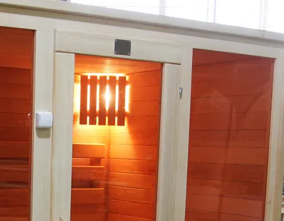 Это специально оборудованная кедровая кабина для прогрева тела человека сухим теплом. Воздух в таких парных не нагревается. Инфракрасные лучи воздействуют на тело, равномерно прогревая мышцы, суставы и органы. Керамические излучатели похожи на лампы, имеют высокую температуру нагрева, поэтому защищены противоожоговыми решетками. Тело человека в таких саунах нагревается интенсивнее. Работает кабина за счет электричества. Установка сауны в угол, позволяет рационально использовать пространство помещения. Подходит как для домашнего использования, так и для коммерции.