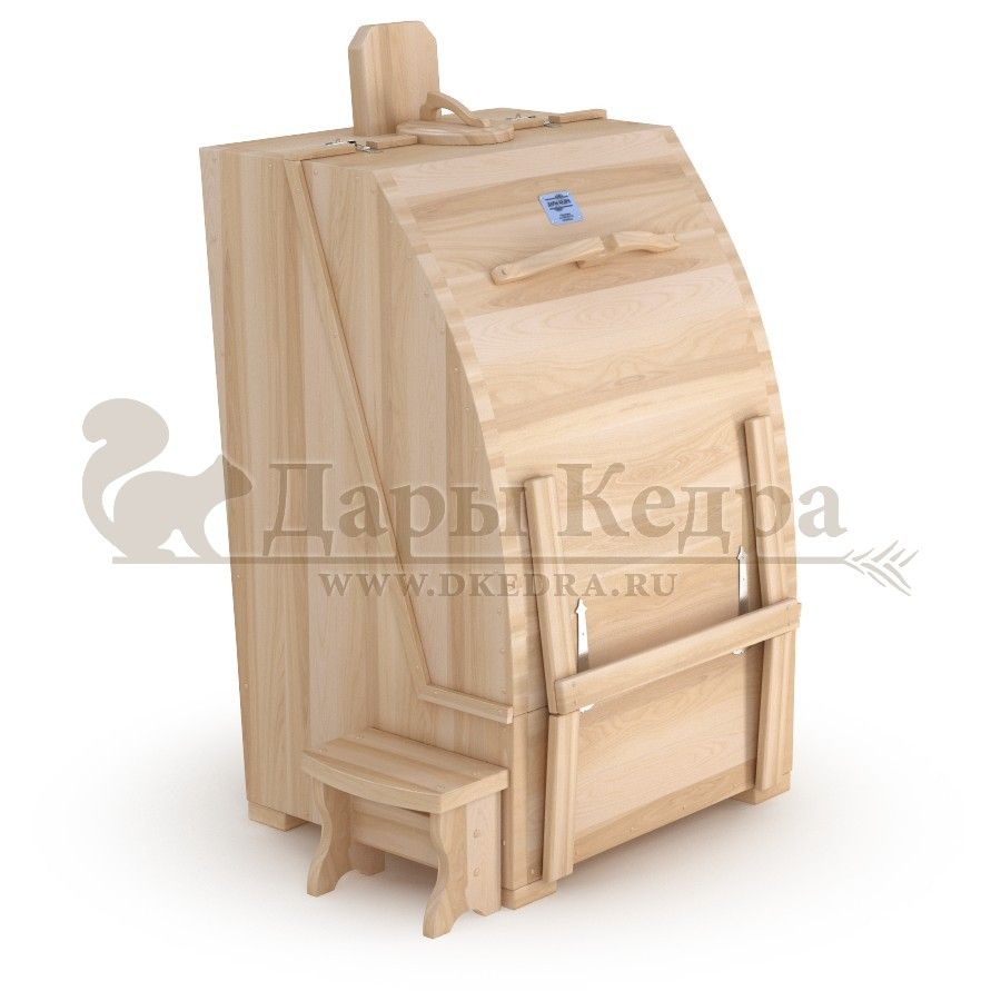 • Кедровая бочка (фитобочка) квадратная «Профессиональная» Квадратная фитобочка из кедра - это мини парная, которую можно использовать не только в спа-салонах, но и дома. Толщина стенок составляет 40-45 мм, что позволяет увеличить срок службы изделия. Откидная дверь бочки во время открывания фиксируется внешней подставкой - опорой, которая в закрытом состоянии складывается и не занимает лишнее пространство. Во время парения человек сидит внутри кедровой бочки, а голова находится снаружи. Благодаря этому исключается возможность перегрева. Встроенная ручка из кедра на двери делает эксплуатацию фитобочки более удобной. Парение в фитобочке благотворно влияет на организм в целом: повышается иммунитет, выводятся шлаки и токсины, улучшается работа органов тела и состояние кожи.