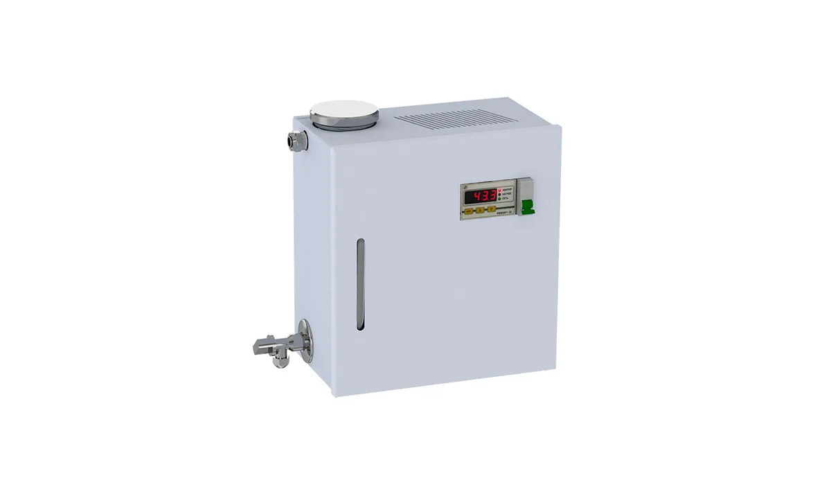 • Парогенератор проточный, от 10 до 16 кВт Проточные парогенераторы подключаются к водопроводу и автоматически добавляют воду в прибор при ее расходовании. Парогенератор служит для образования пара в саунах, хамамах, банях и душевых кабинах. Мощность стоит выбирать в зависимости от объема парной. При достижении необходимой температуры, происходит автоматическое прекращение подачи тепла для нагрева воды. При снижении температуры более чем на 3°С, температурный датчик снова включает подогрев. Таким образом время непрерывной работы парогенератора составляет более 12 часов.